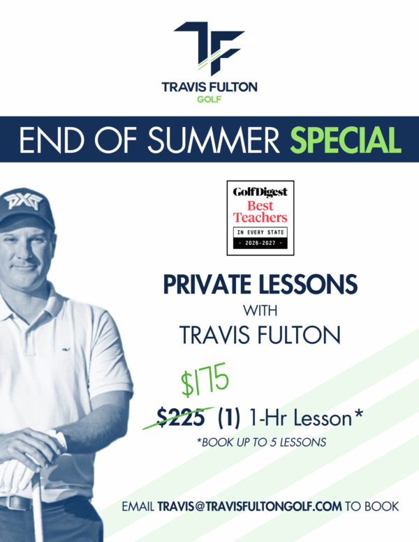 Take your game to the next level with private instruction from Travis Fulton. Each lesson is designed to provide personalized coaching, tailored to your swing, strategy, and goals on the course.